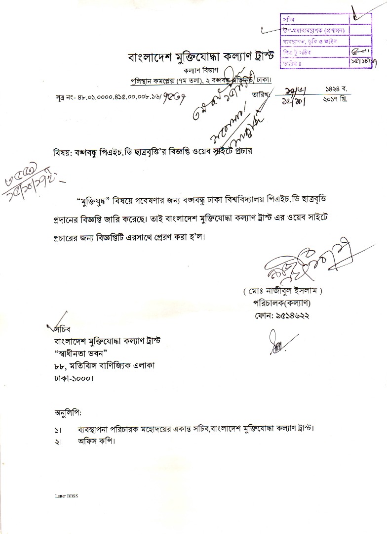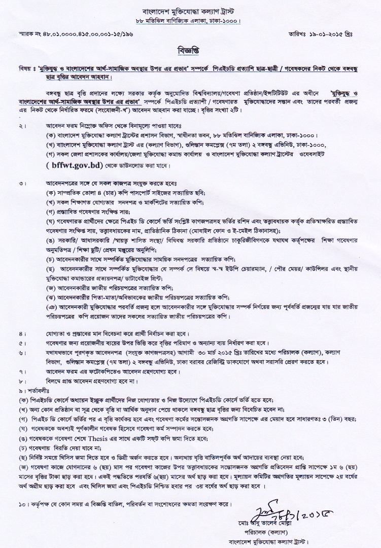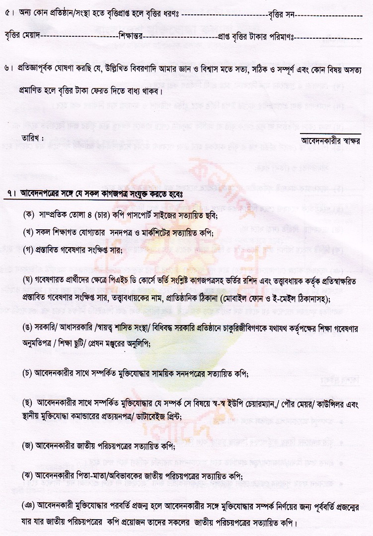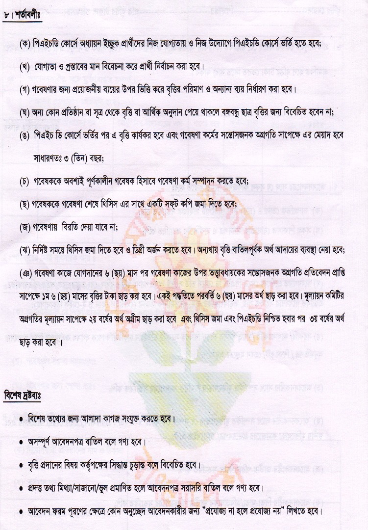 ফাইলটি ক্লিক করে ডাউনলোডের মাধ্যমে পিএইচডি প্রত্যাশী বঙ্গঁবন্ধু ছাত্রবৃত্তি ফরম/শর্তাবলী প্রয়োজন হলে প্রিন্ট করে পড়ুন এবং সিদ্ধান্ত নিন।