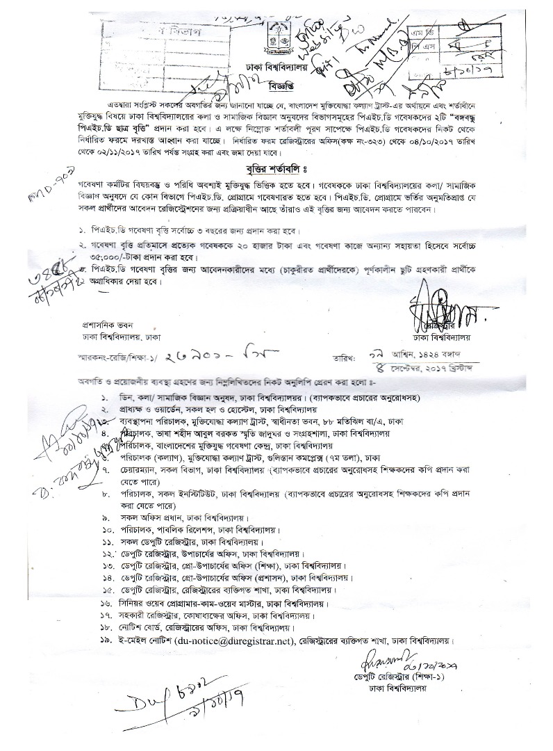 মুক্তিযুদ্ধ ও বাংলাদেশ আর্থ-সামাজিক অবস্থার উপর এর প্রভাব’ সম্পর্কে পিএইচডি ডিগ্রী লাভের বিষয়ে ঢাকা বিশ্ববিদ্যালয়